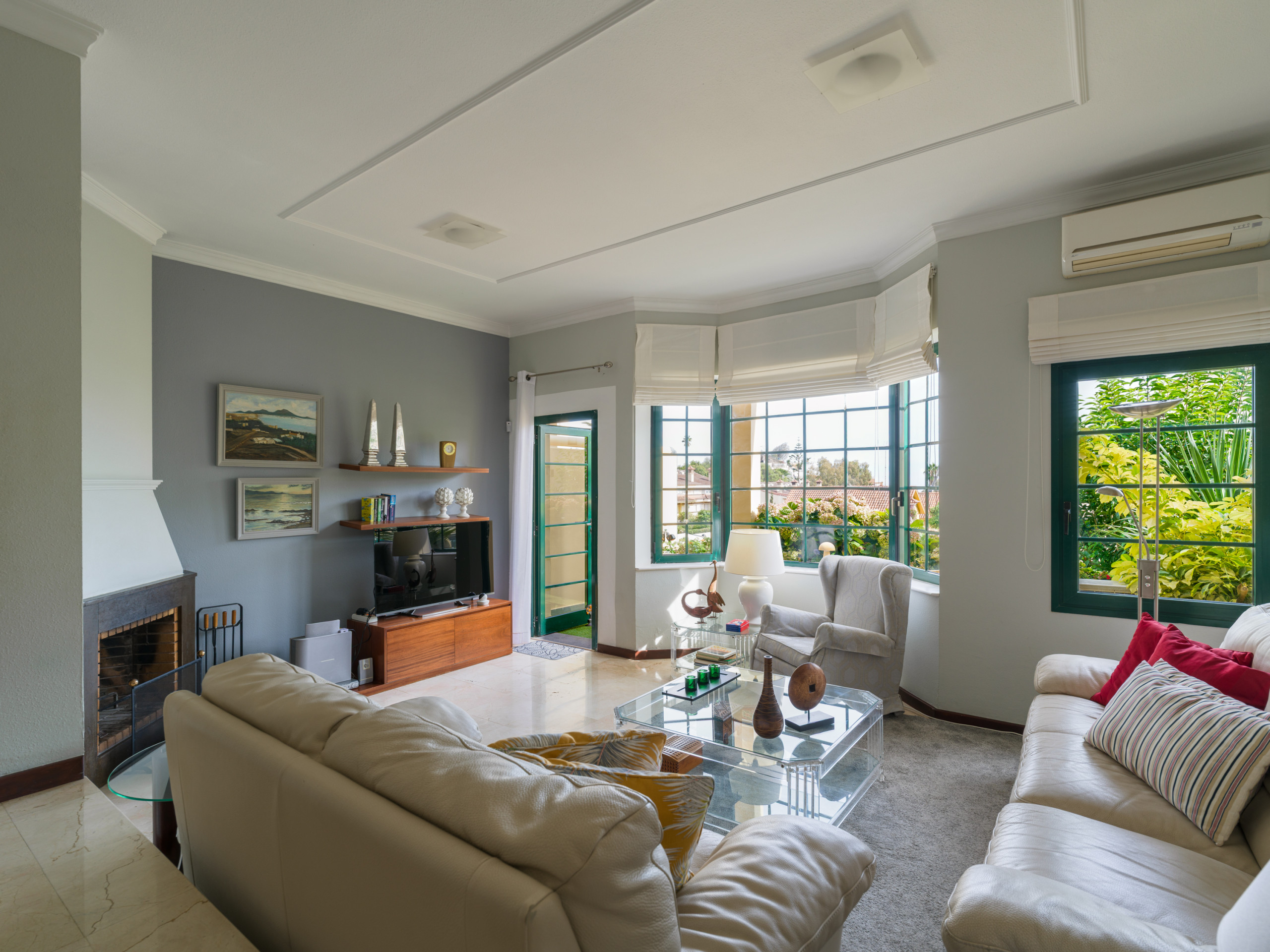 Among its features are marble flooring, individual air conditioning in the living room and some bedrooms, heat pump heating, WiFi connection and a fireplace for cooler nights.