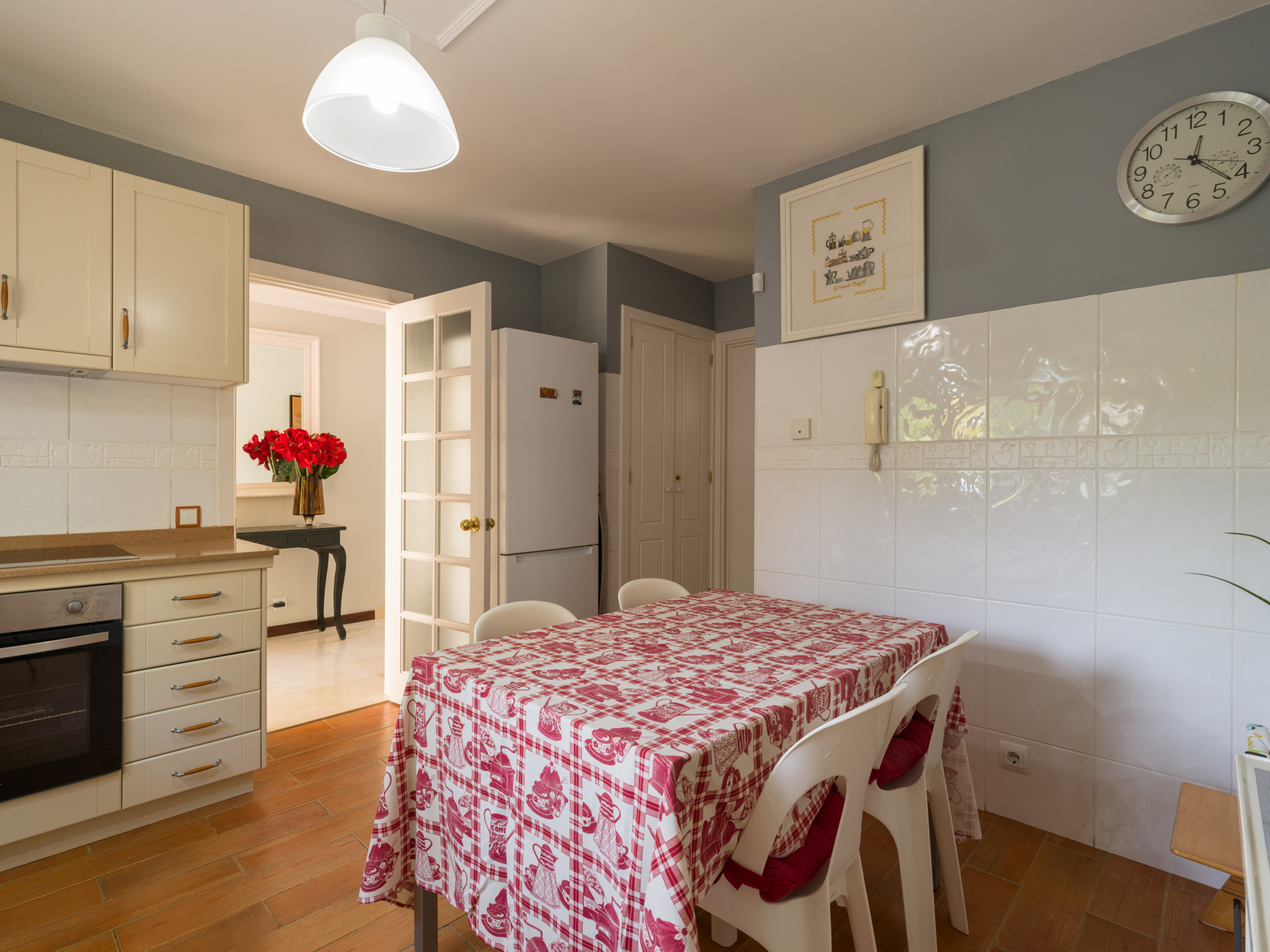 The kitchen, fully equipped and independent, includes state-of-the-art appliances such as a washing machine, dryer, dishwasher, oven, microwave, coffee maker, toaster, and kettle. It has a ceramic hob and all the necessary utensils to prepare delicious meals.