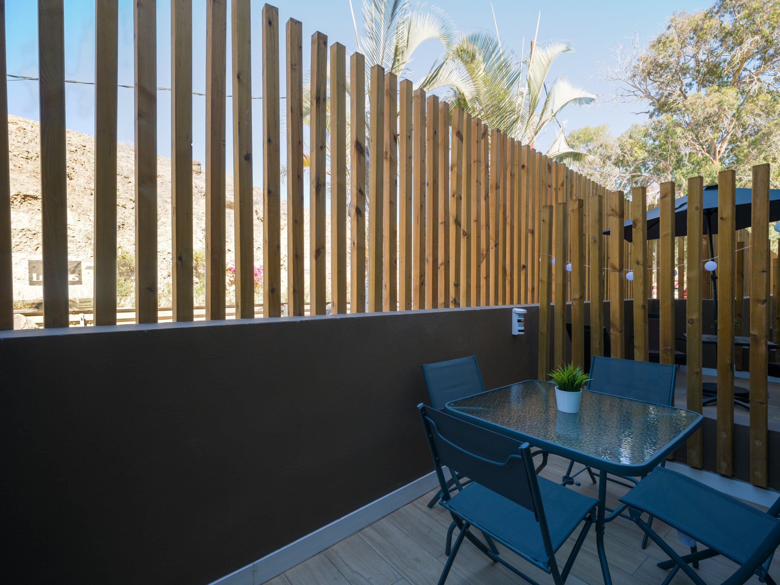 Your bright bathroom with a shower and carefully selected details will make you feel at home. The 9-square-metre terrace will allow you to enjoy moments of relaxation under the Canarian sun. Smoking is only permitted on the terrace; smoking is not allowed inside the accommodation.
